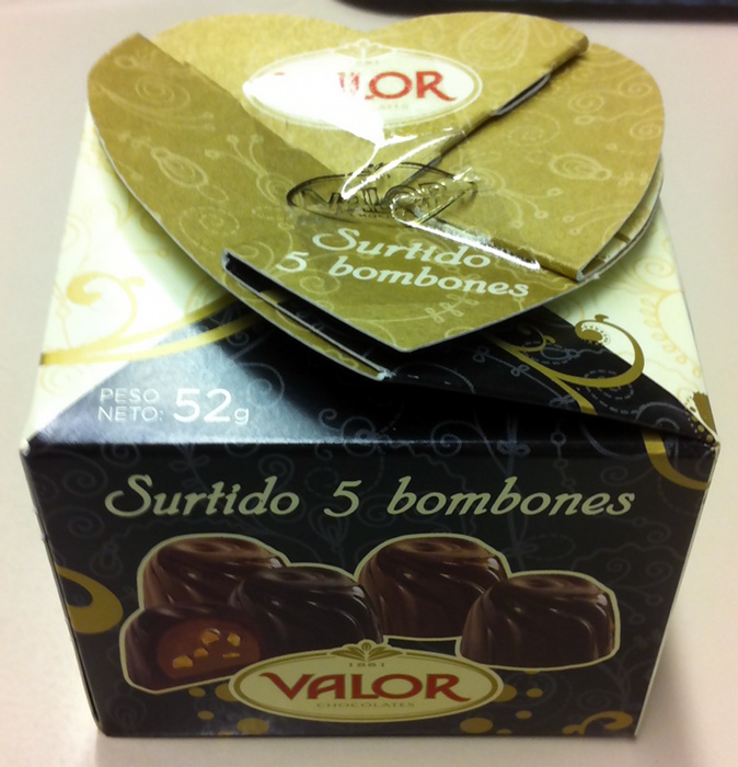 La semana pasada vino María y me regaló una cajita con cinco bombones exquisitos, supremos, de la más alta calidad, un lujo al alcance de todo el que se pueda acercar a un supermercado y lleve un euro consigo.